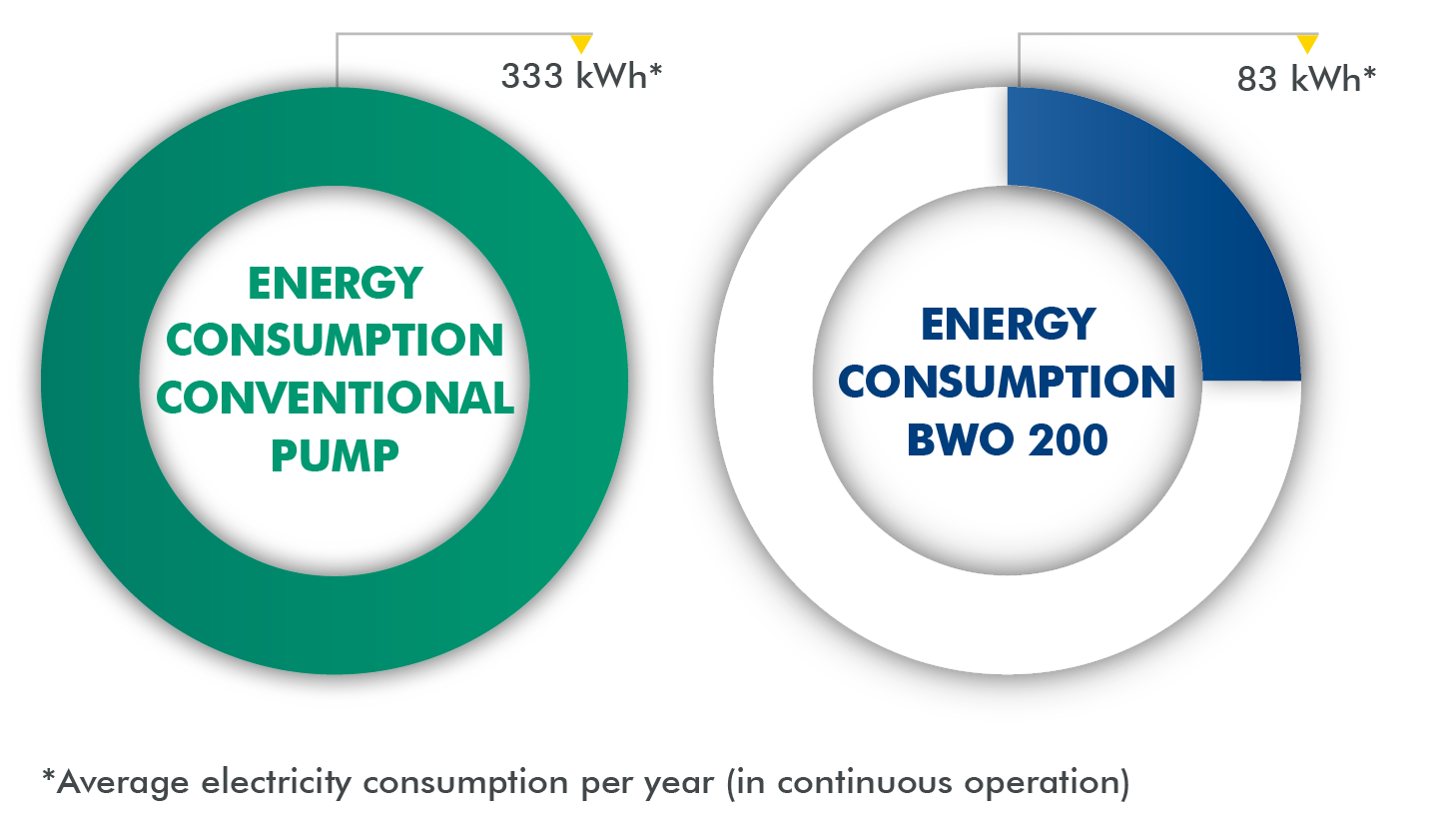 The BlueOne XL pump roughly uses 25% of the energy in comparison to pumps with conventional asynchronous motors.